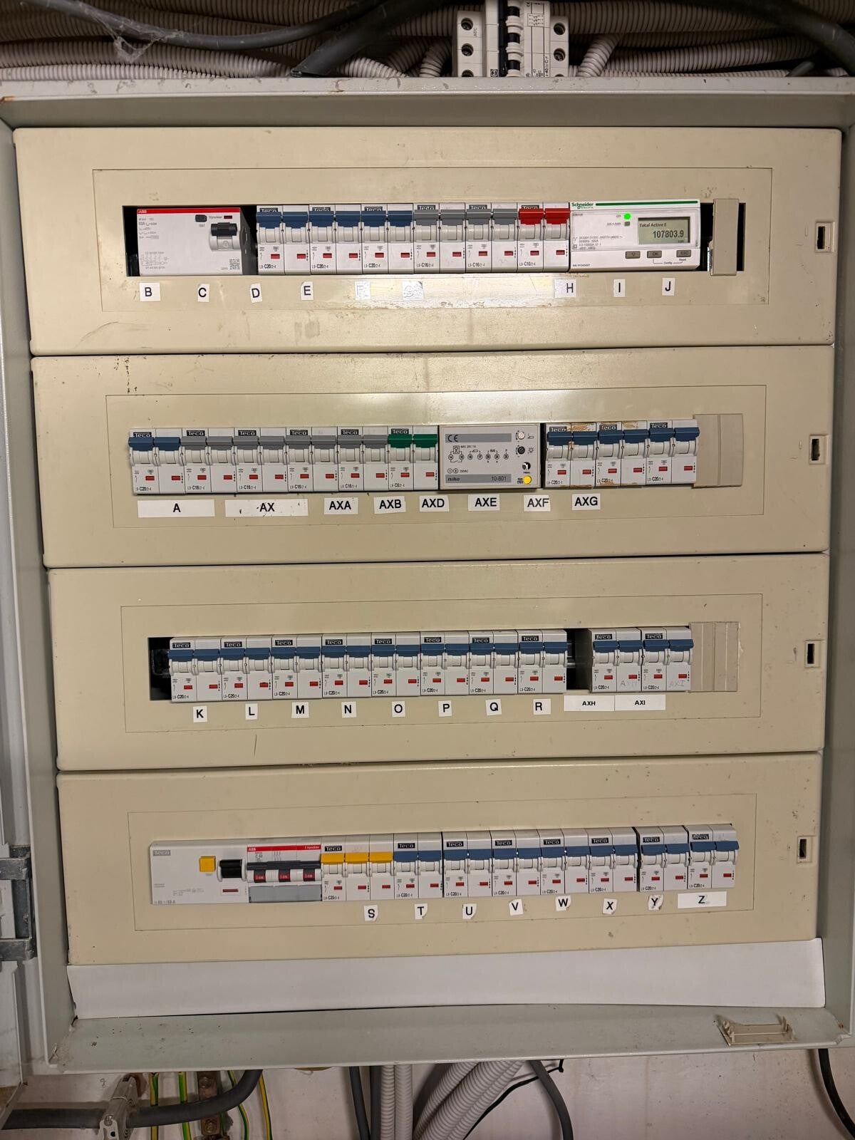 Bij een totale renovatie vernieuwen we de volledige elektrische installatie van je woning. Oude bekabeling, zekeringen en aansluitpunten worden vervangen door een moderne, veilige en energiezuinige installatie die volledig voldoet aan de AREI‑normen. Zo is je woning klaar voor de toekomst: van warmtepompen en zonnepanelen tot laadpalen en domotica.